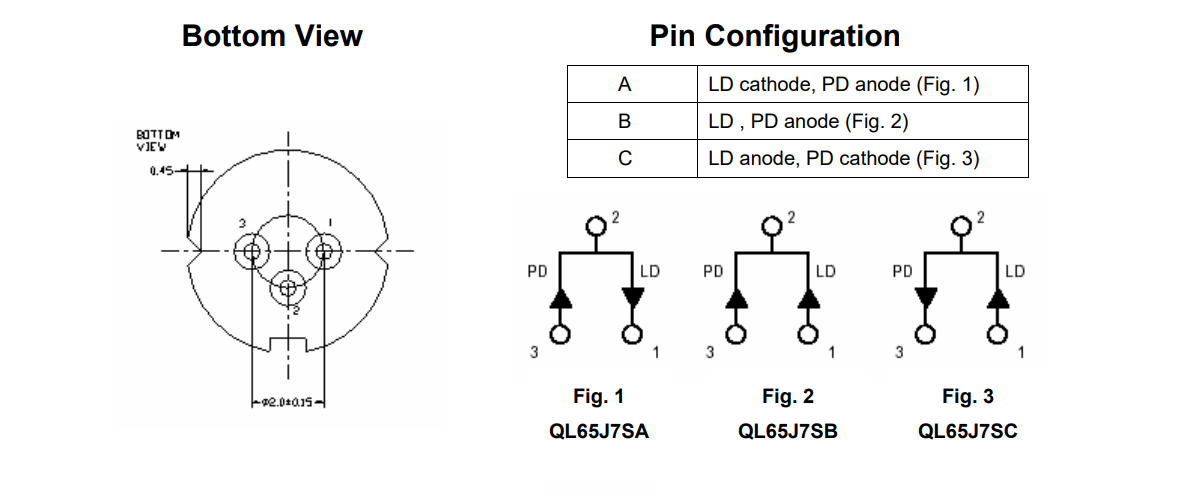 QL65J7S-A/B/C is a MOCVD grown 650nm band InGaAlP laser diode with quantum well structure.